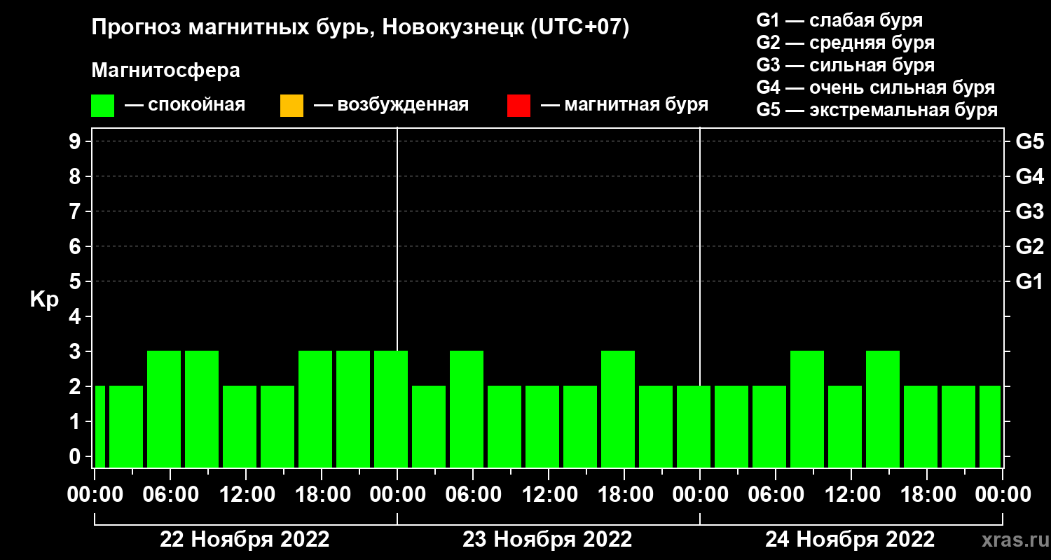 Прогноз магнитных бурь в Новокузнецке — 22 ноября 2022 года