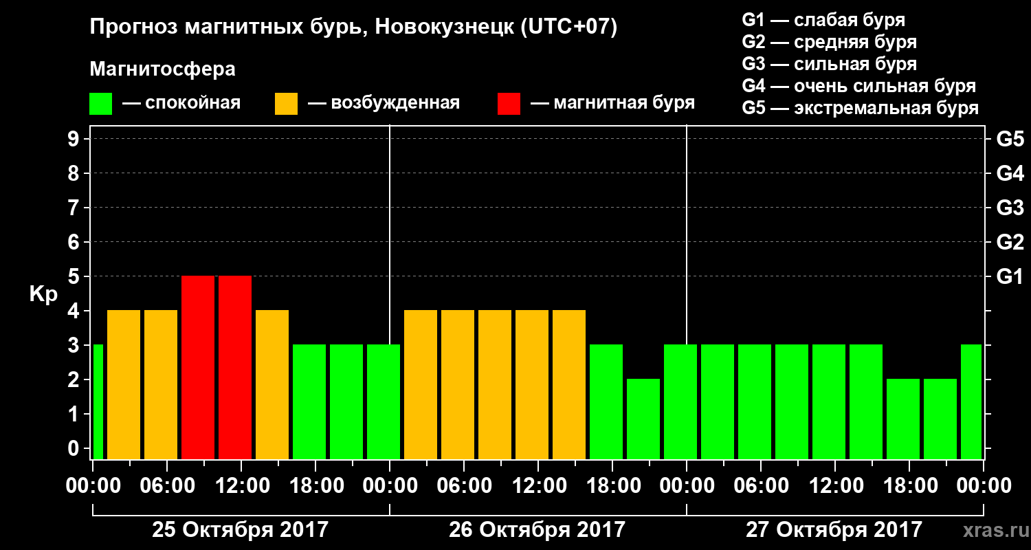 Прогноз магнитных бурь в Новокузнецке — 25 октября 2017 года