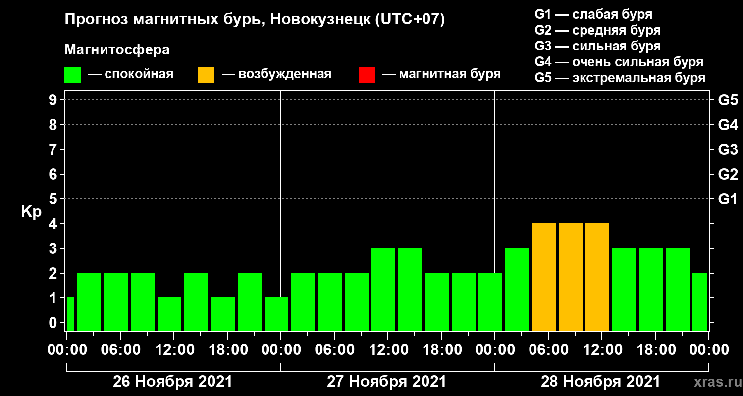 Прогноз магнитных бурь в Новокузнецке — 26 ноября 2021 года