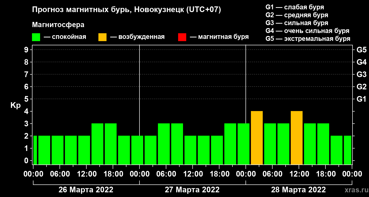 Прогноз магнитных бурь в Новокузнецке — 26 марта 2022 года