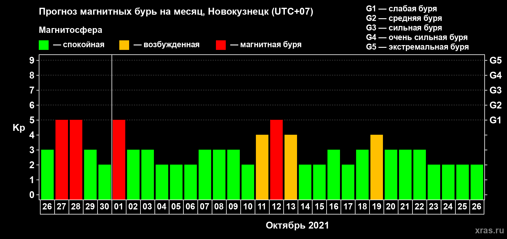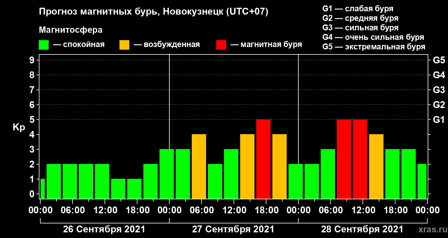 Прогноз магнитных бурь в Новокузнецке на 26 сентября 2021 года