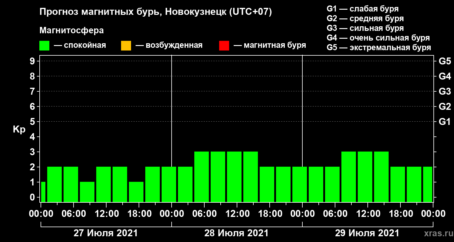 Прогноз магнитных бурь в Новокузнецке на 27 июля 2021 года