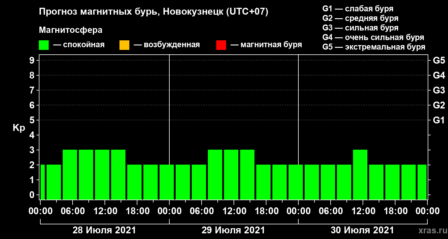Прогноз магнитных бурь в Новокузнецке — 28 июля 2021 года