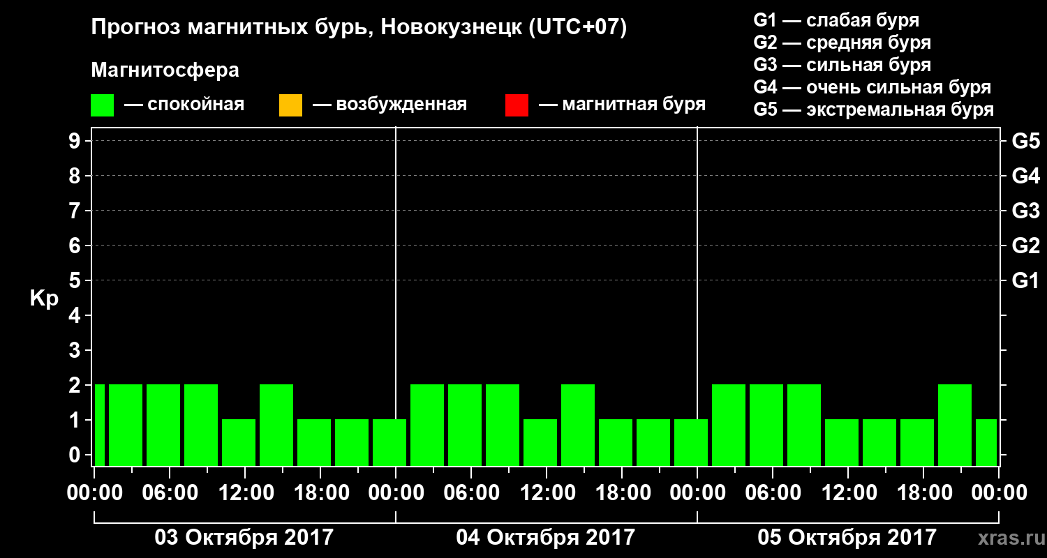 Прогноз магнитных бурь в Новокузнецке — 3 октября 2017 года