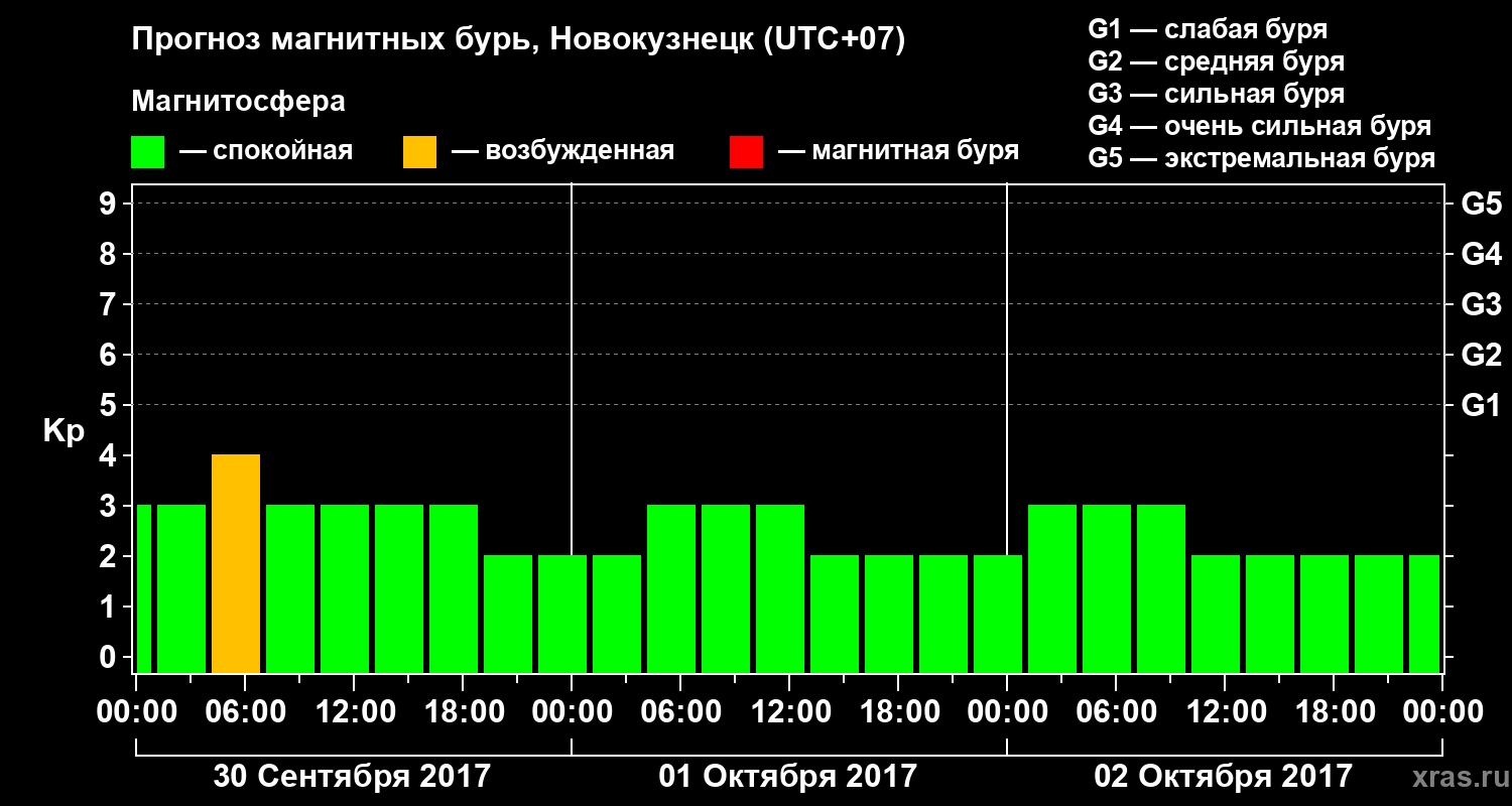Прогноз магнитных бурь в Новокузнецке — 30 сентября 2017 года