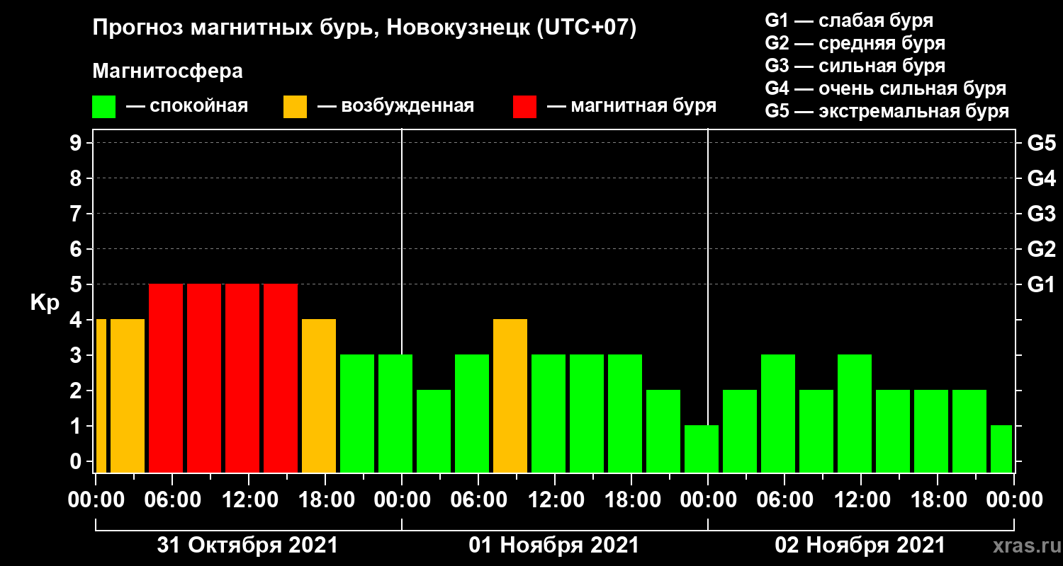 Прогноз магнитных бурь в Новокузнецке — 31 октября 2021 года