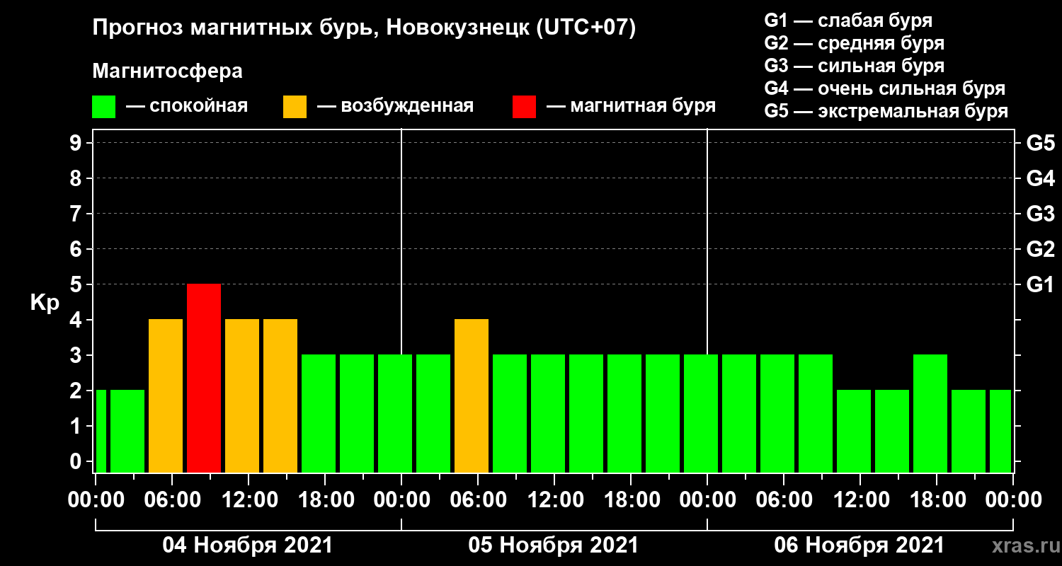 Прогноз магнитных бурь в Новокузнецке — 4 ноября 2021 года