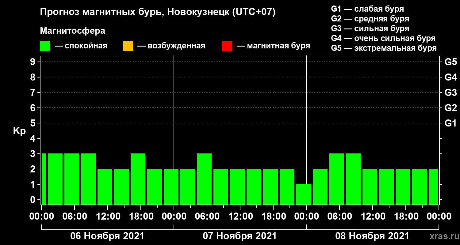 Прогноз магнитных бурь в Новокузнецке — 6 ноября 2021 года