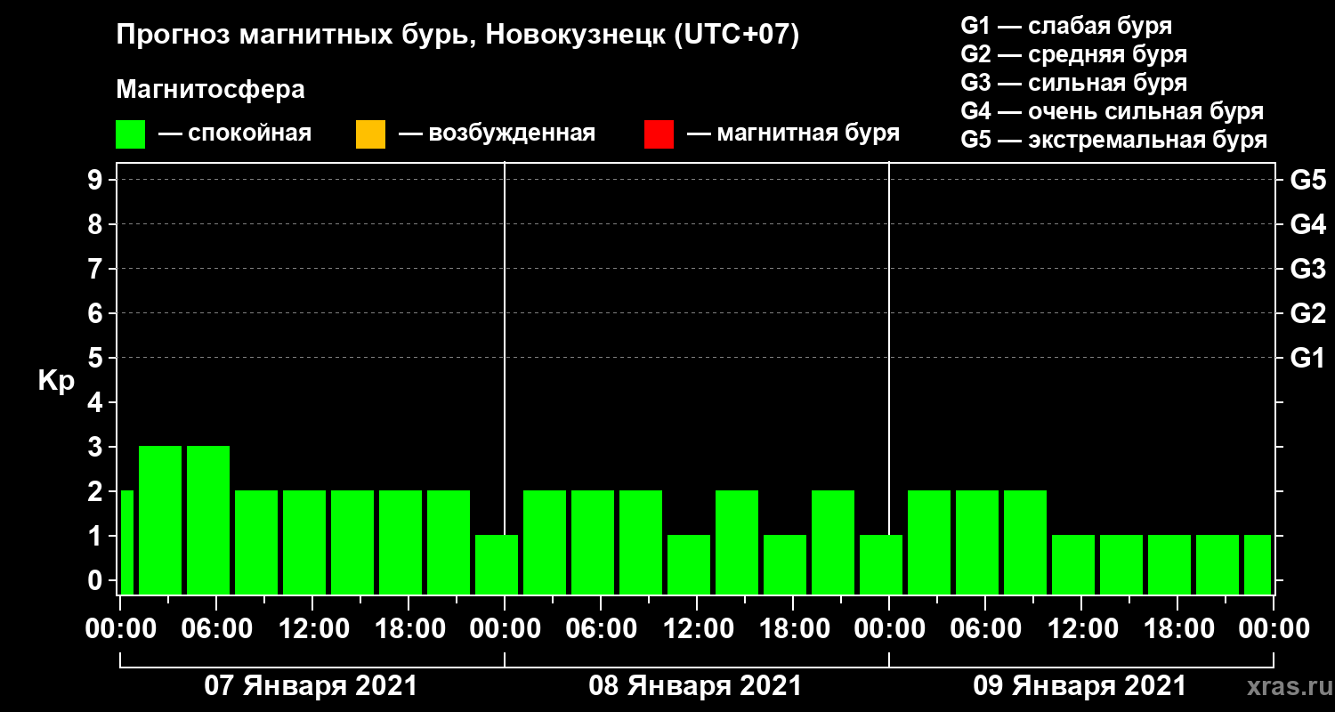 Прогноз магнитных бурь в Новокузнецке на 7 января 2021 года