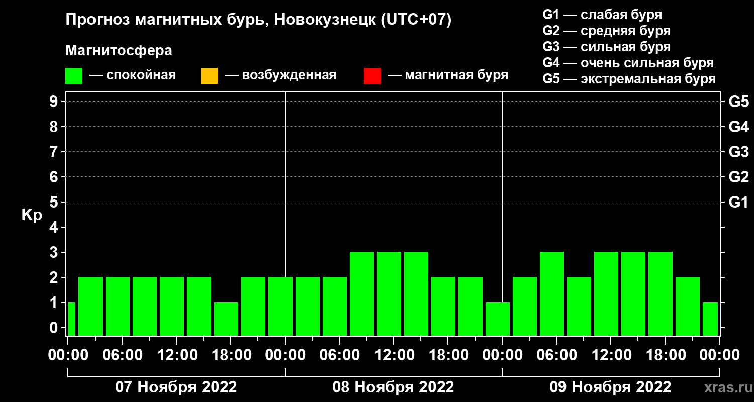 Прогноз магнитных бурь в Новокузнецке — 7 ноября 2022 года