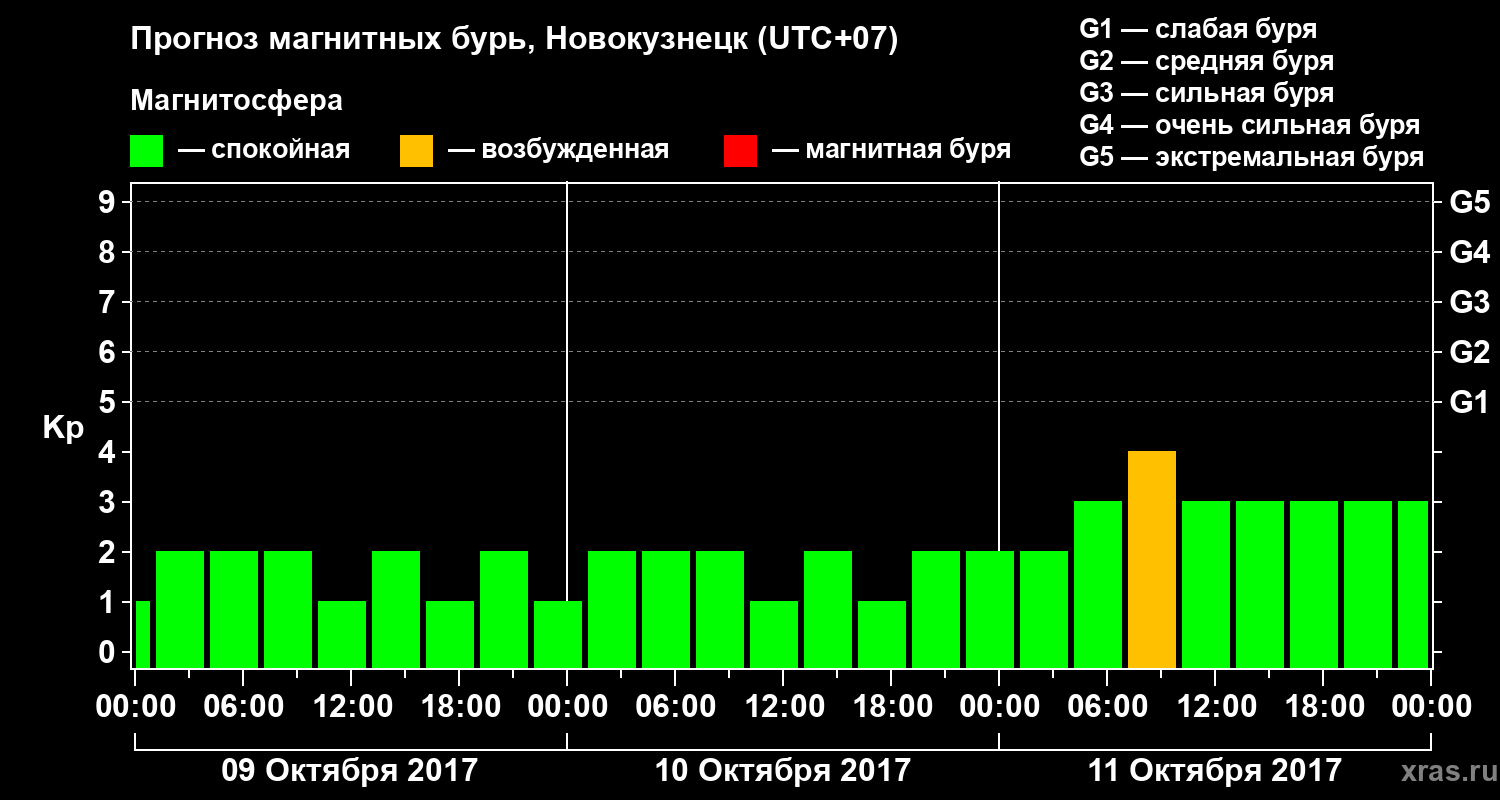 Прогноз магнитных бурь в Новокузнецке — 9 октября 2017 года