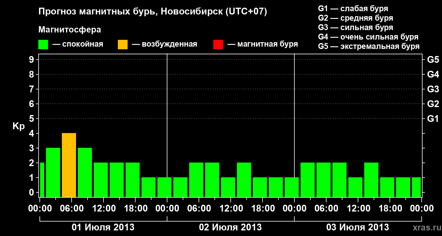 Прогноз магнитных бурь в Новосибирске — 1 июля 2013 года