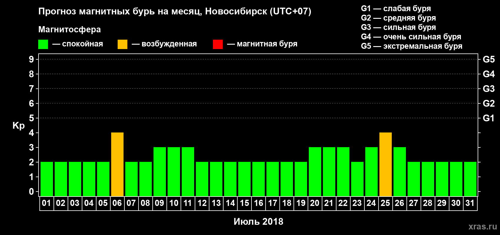 Прогноз магнитных бурь в Новосибирске — 1 июля 2018 года