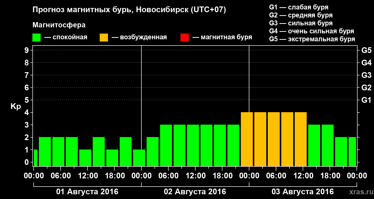 Прогноз магнитных бурь в Новосибирске на 1 августа 2016 года