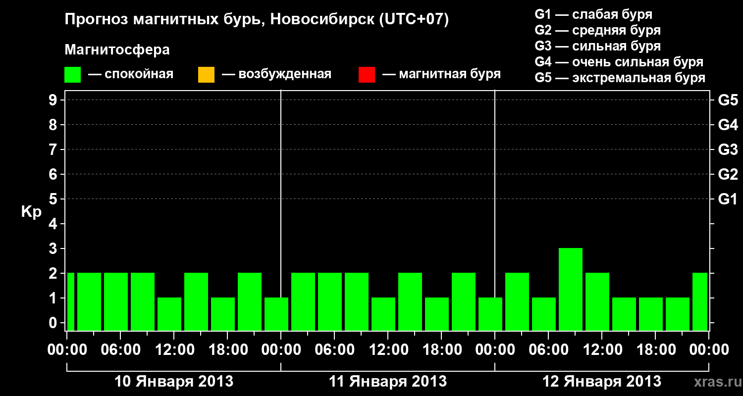 Прогноз магнитных бурь в Новосибирске — 10 января 2013 года