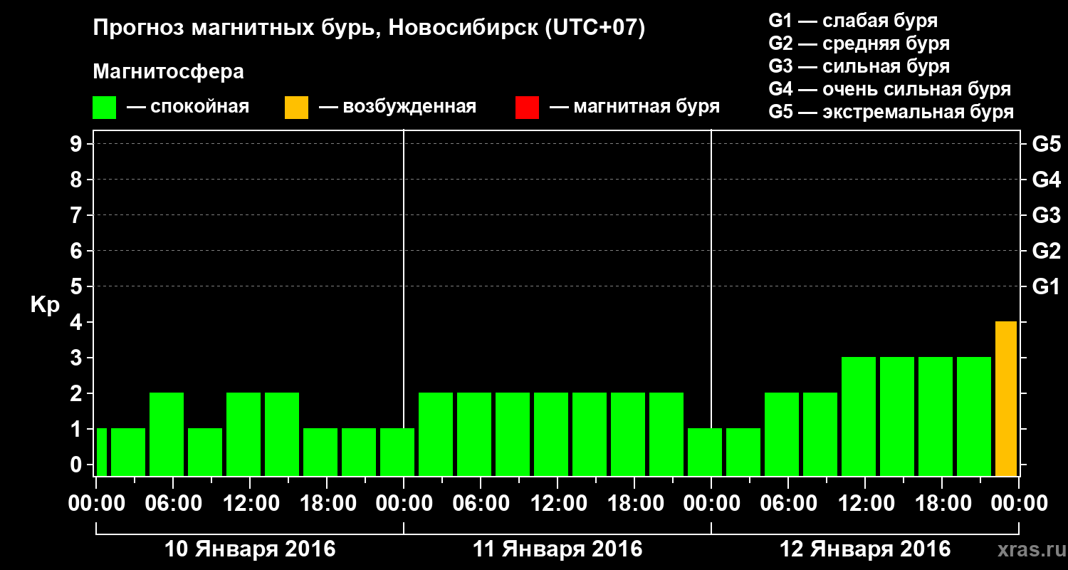 Прогноз магнитных бурь в Новосибирске — 10 января 2016 года