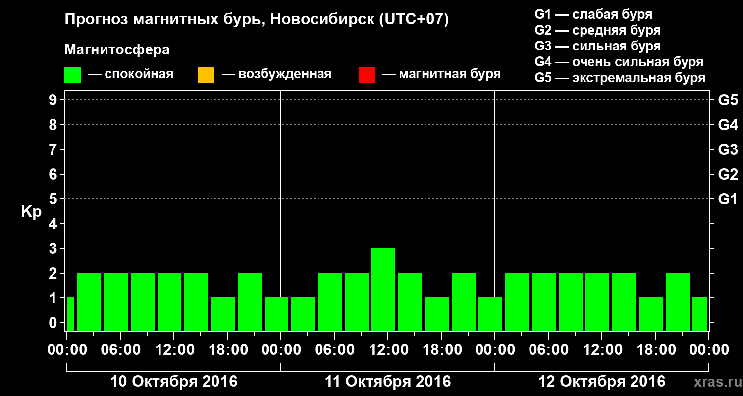 Прогноз магнитных бурь в Новосибирске — 10 октября 2016 года