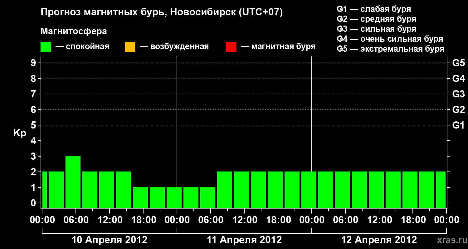 Прогноз магнитных бурь в Новосибирске — 10 апреля 2012 года