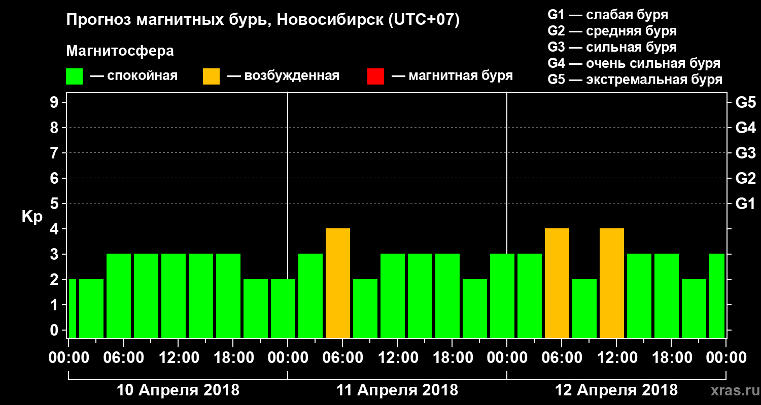 Прогноз магнитных бурь в Новосибирске — 10 апреля 2018 года