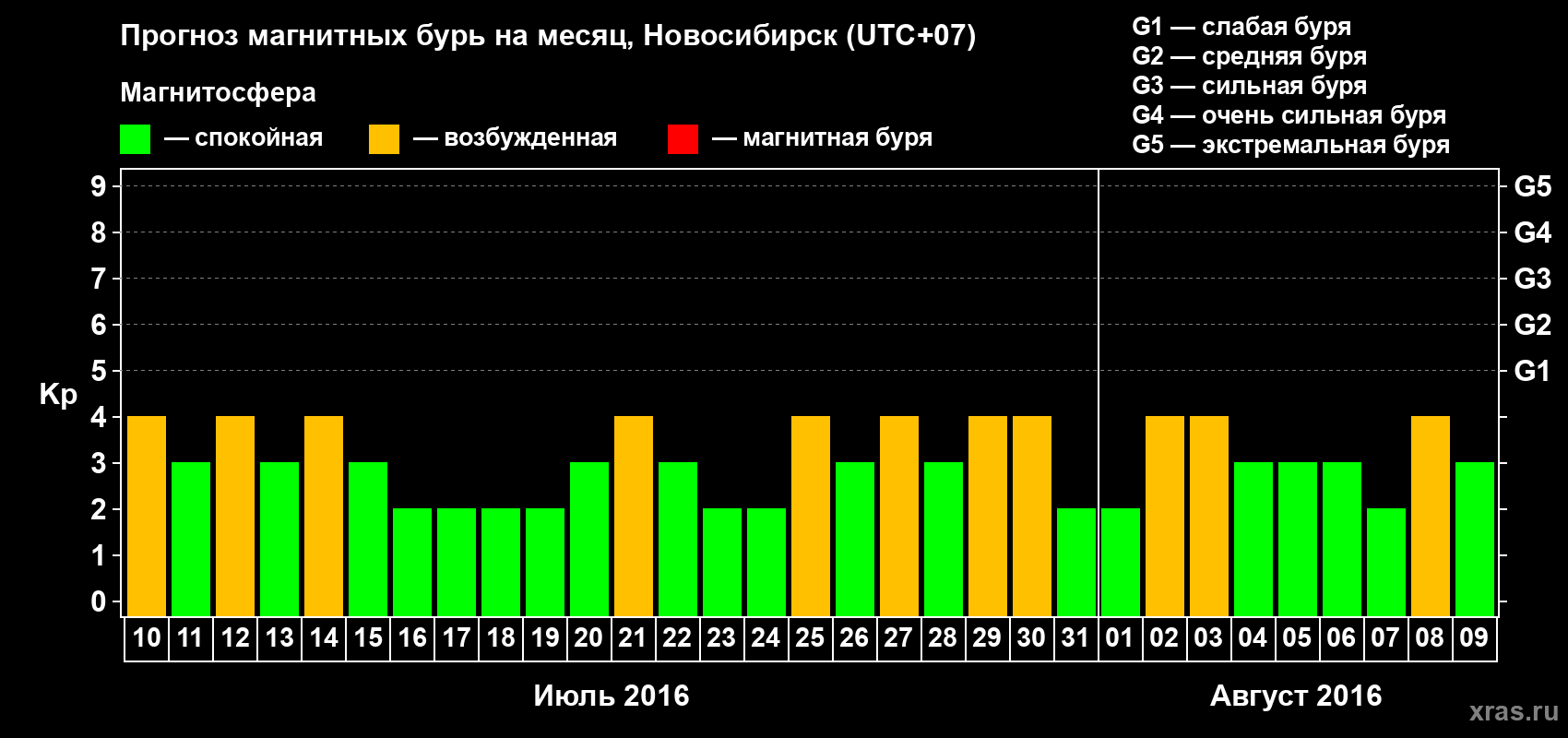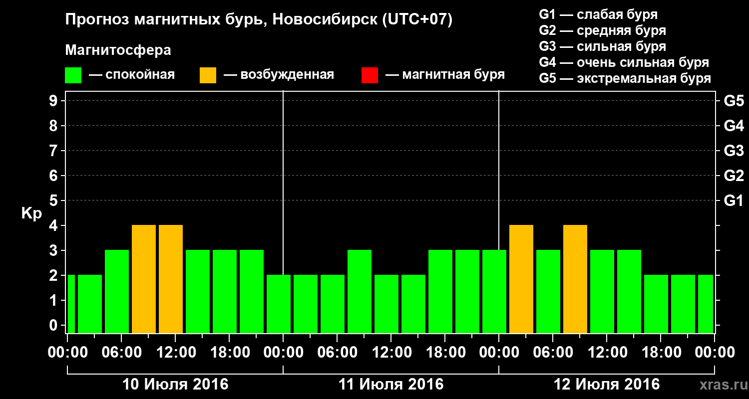 Прогноз магнитных бурь в Новосибирске — 10 июля 2016 года