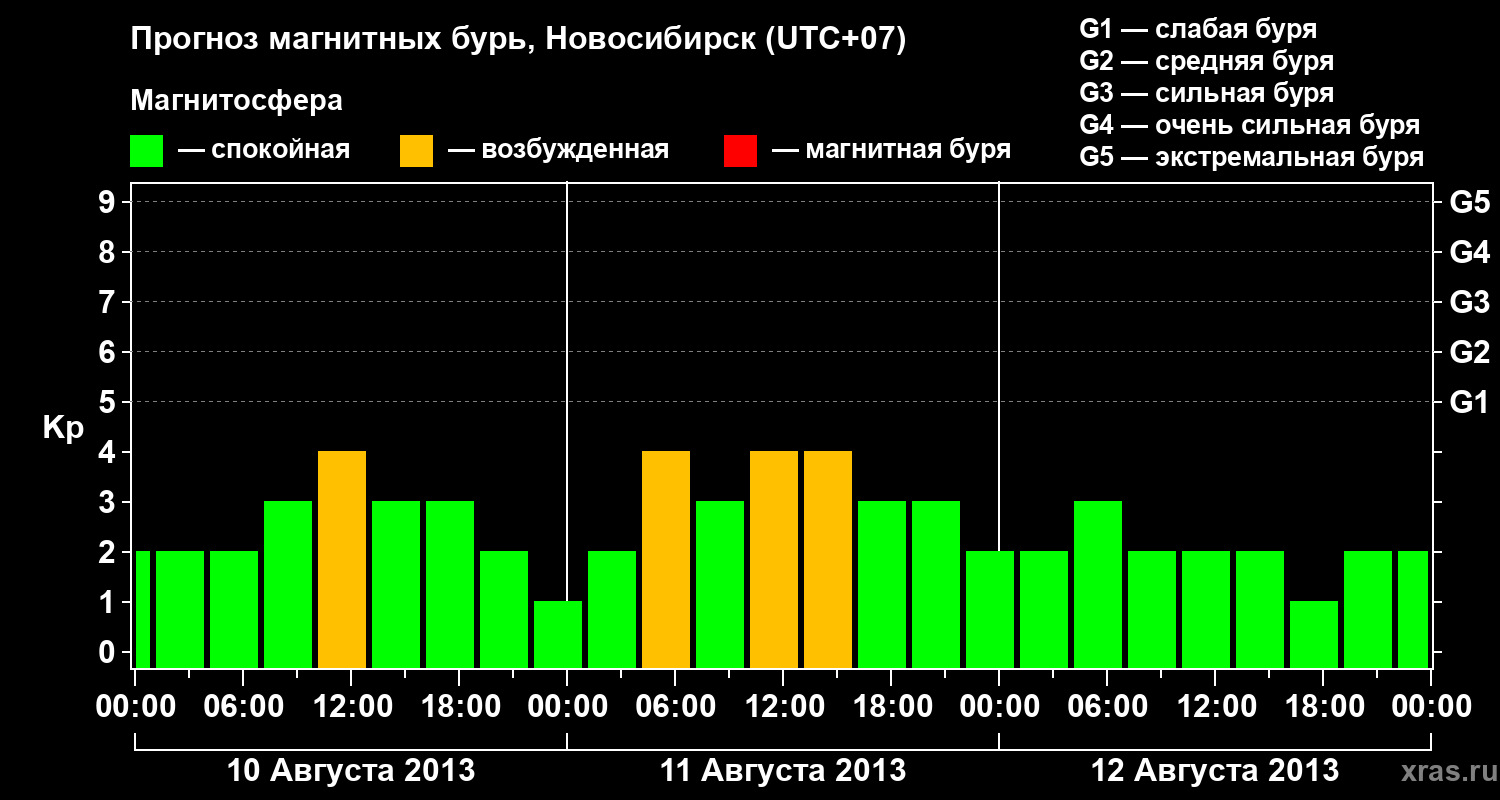 Прогноз магнитных бурь в Новосибирске — 10 августа 2013 года