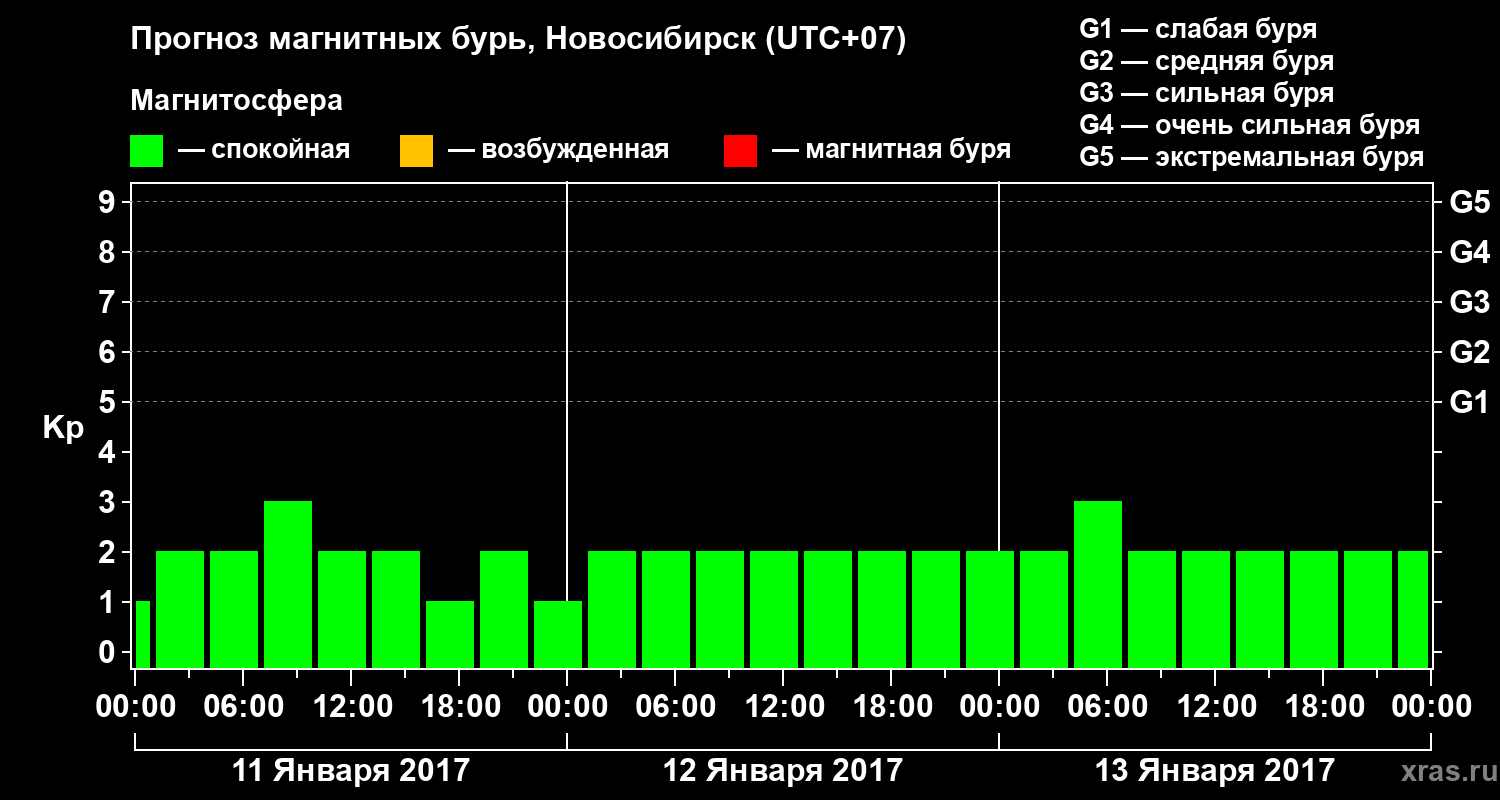 Прогноз магнитных бурь в Новосибирске — 11 января 2017 года
