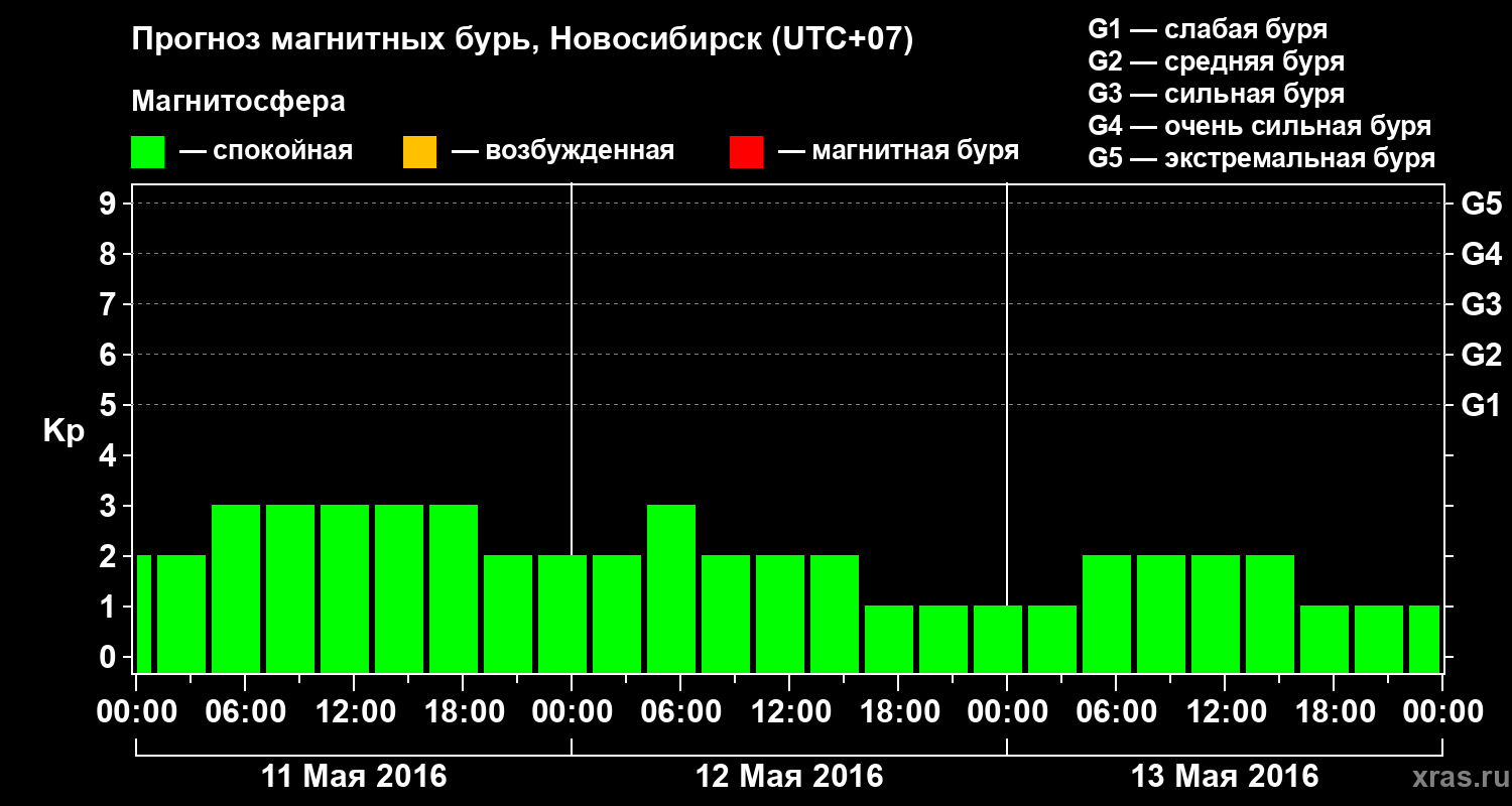 Прогноз магнитных бурь в Новосибирске — 11 мая 2016 года