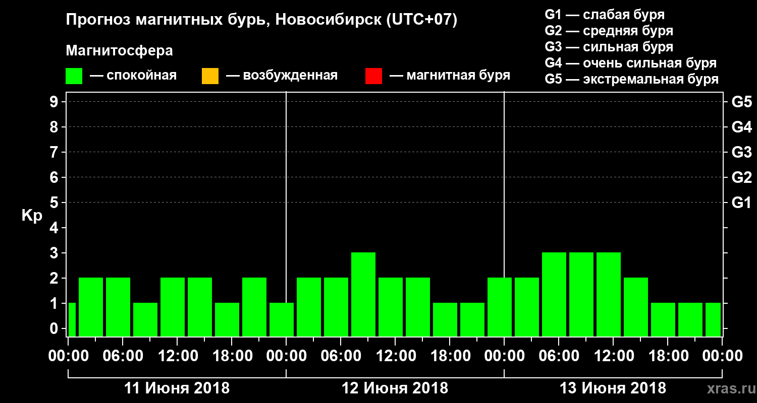 Прогноз магнитных бурь в Новосибирске — 11 июня 2018 года