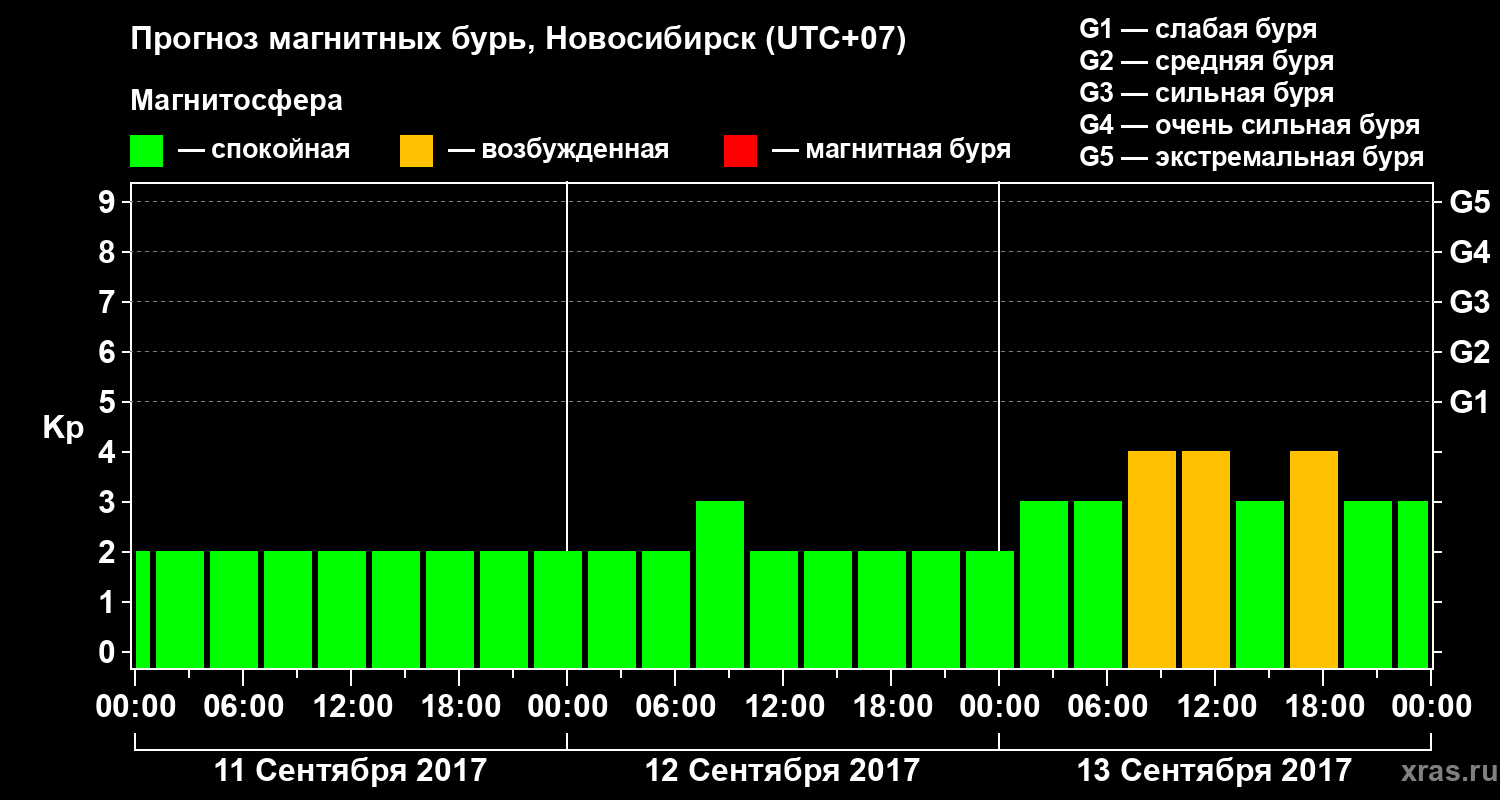 Прогноз магнитных бурь в Новосибирске — 11 сентября 2017 года