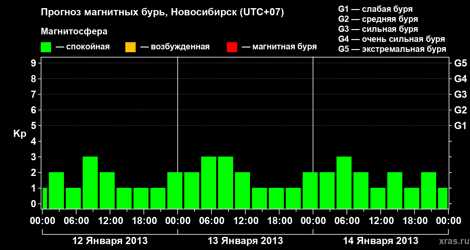 Прогноз магнитных бурь в Новосибирске — 12 января 2013 года