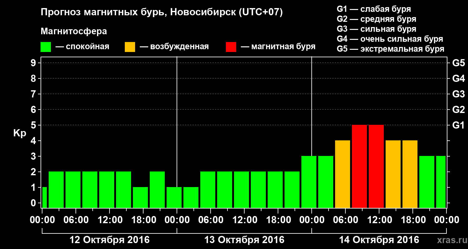 Прогноз магнитных бурь в Новосибирске — 12 октября 2016 года