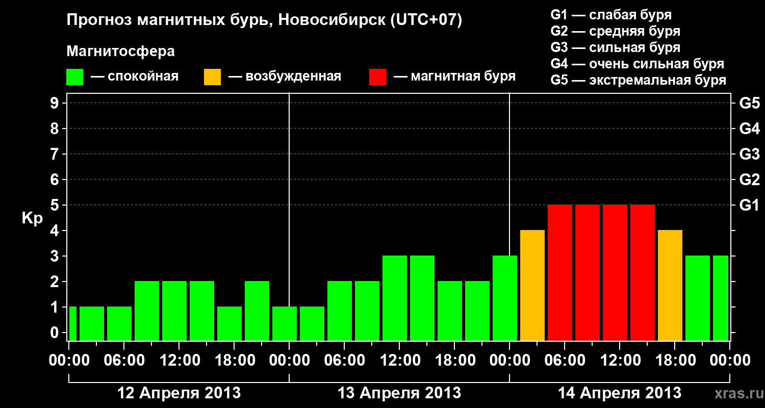 Прогноз магнитных бурь в Новосибирске — 12 апреля 2013 года