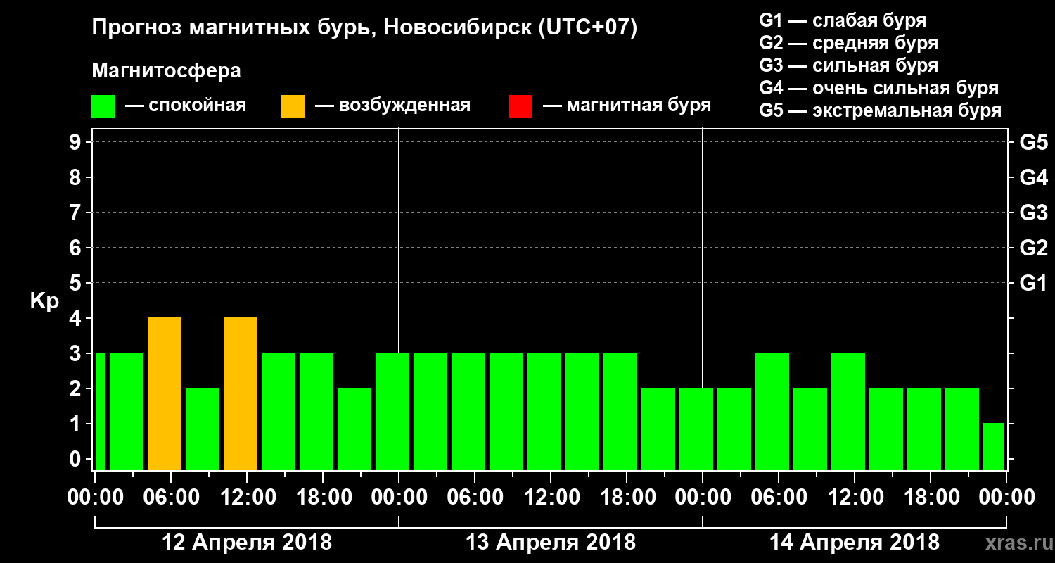Прогноз магнитных бурь в Новосибирске на 12 апреля 2018 года