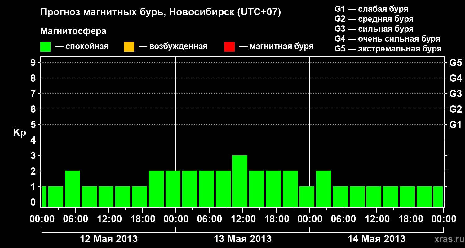 Прогноз магнитных бурь в Новосибирске — 12 мая 2013 года