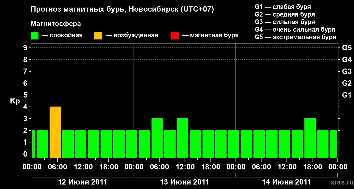 Прогноз магнитных бурь в Новосибирске — 12 июня 2011 года