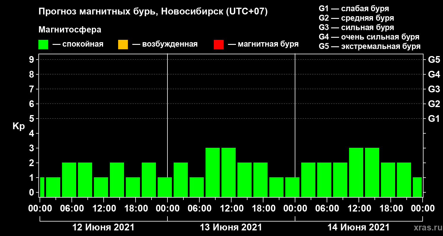 Прогноз магнитных бурь в Новосибирске — 12 июня 2021 года