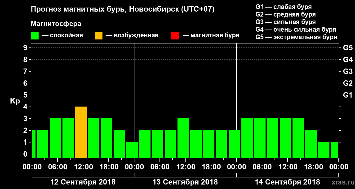 Прогноз магнитных бурь в Новосибирске — 12 сентября 2018 года