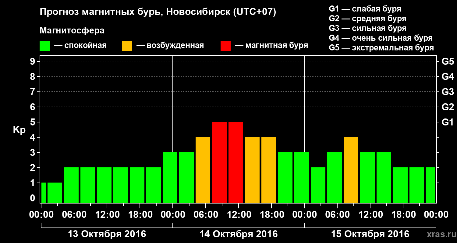 Прогноз магнитных бурь в Новосибирске — 13 октября 2016 года
