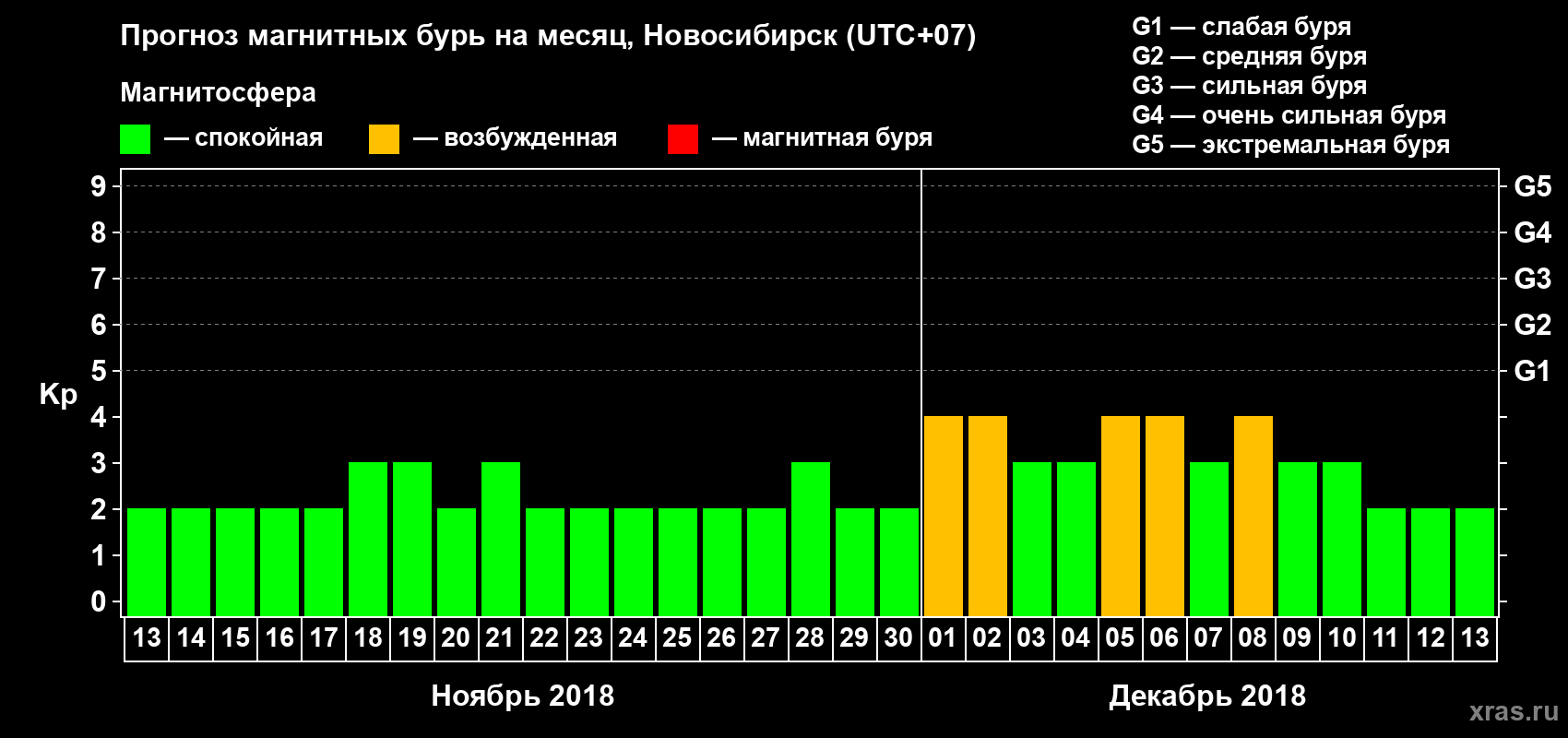 Прогноз магнитных бурь в Новосибирске — 13 ноября 2018 года