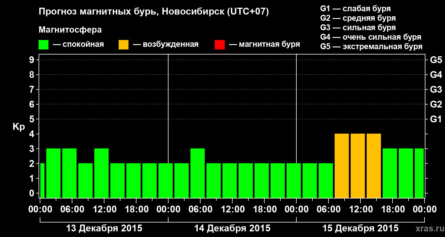 Прогноз магнитных бурь в Новосибирске — 13 декабря 2015 года
