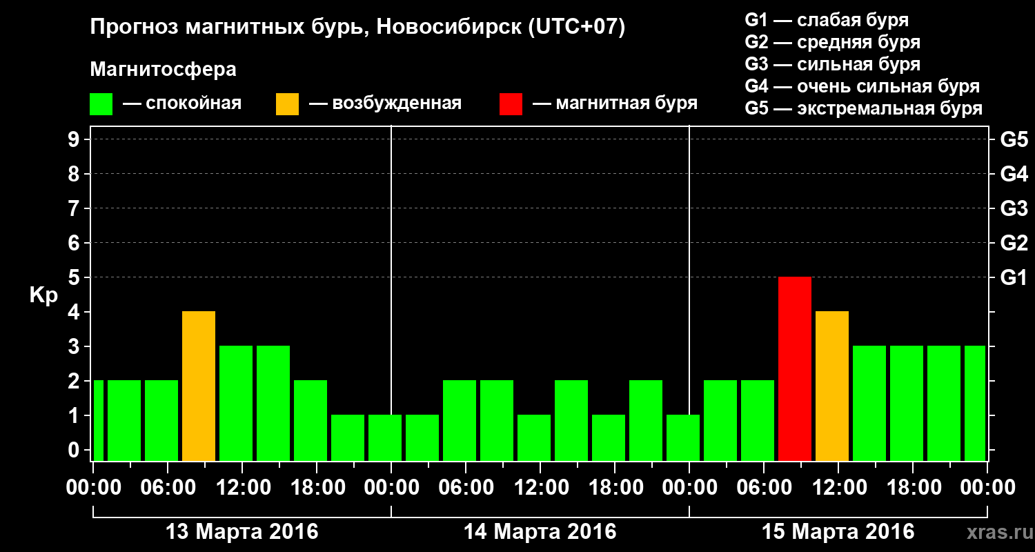Прогноз магнитных бурь в Новосибирске — 13 марта 2016 года