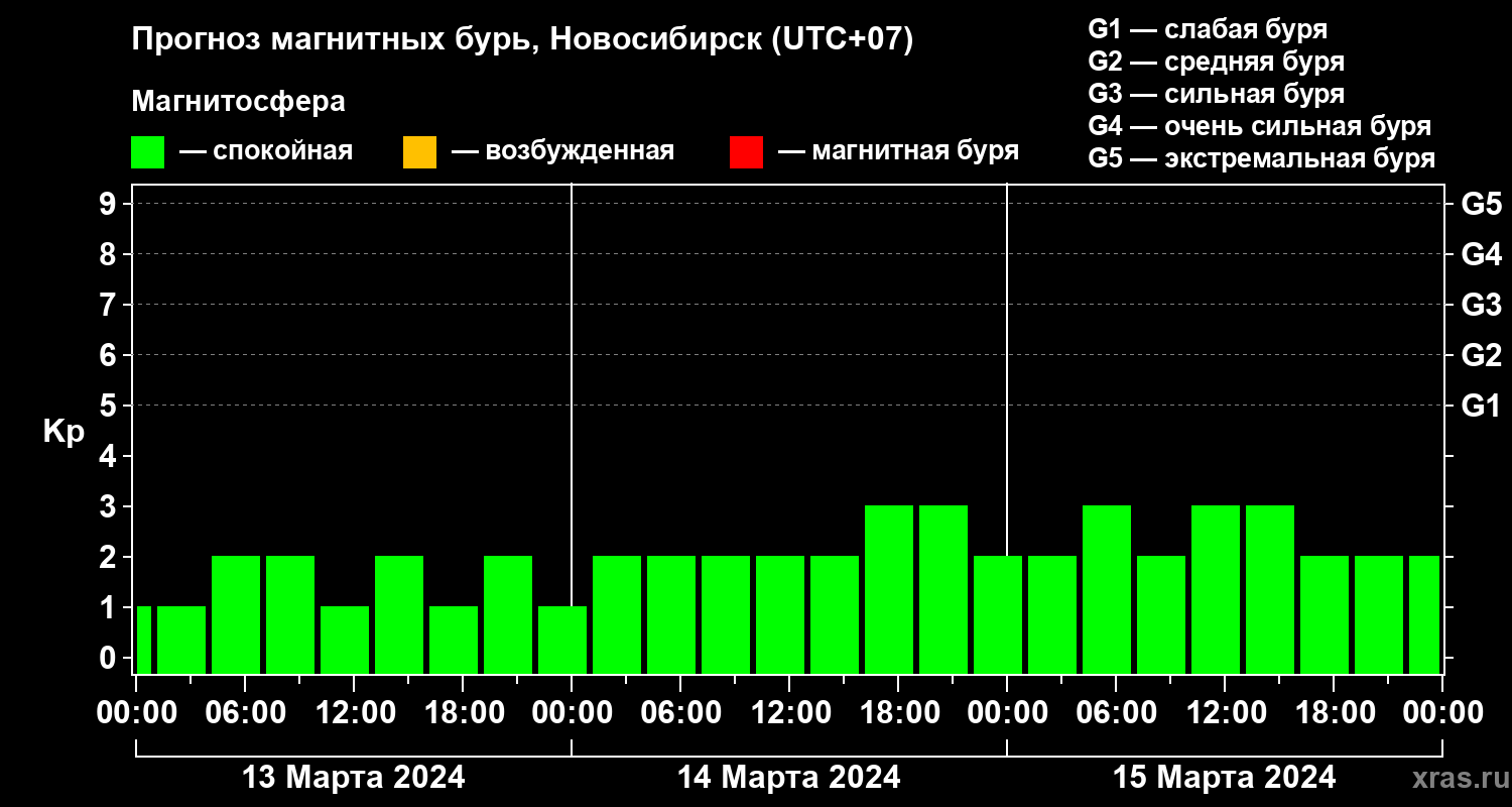 Прогноз магнитных бурь в Новосибирске — 13 марта 2024 года