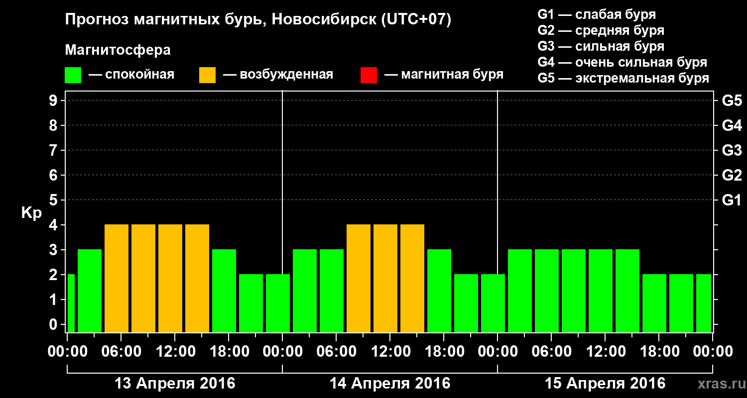 Прогноз магнитных бурь в Новосибирске — 13 апреля 2016 года