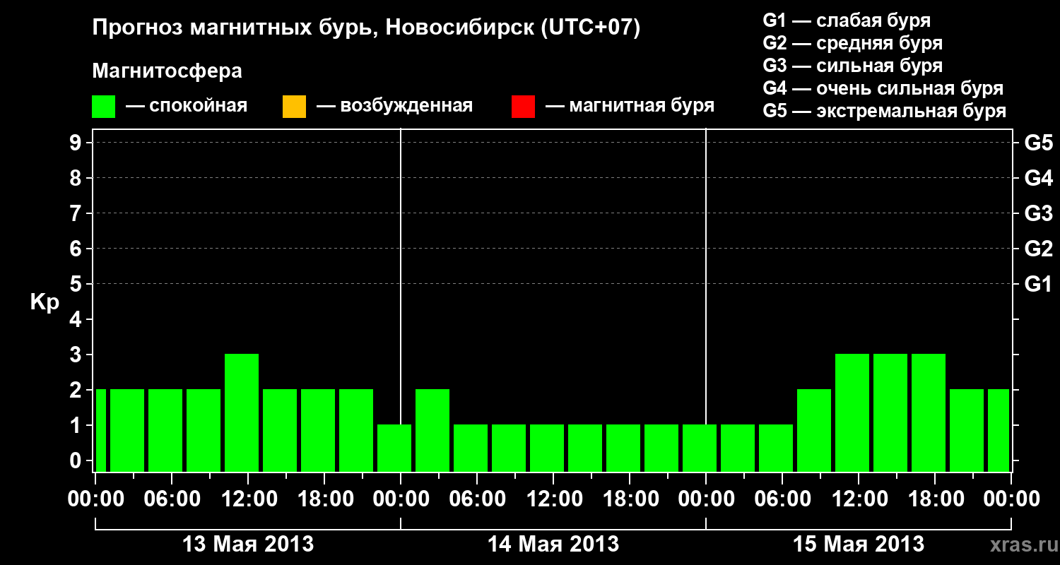 Прогноз магнитных бурь в Новосибирске — 13 мая 2013 года