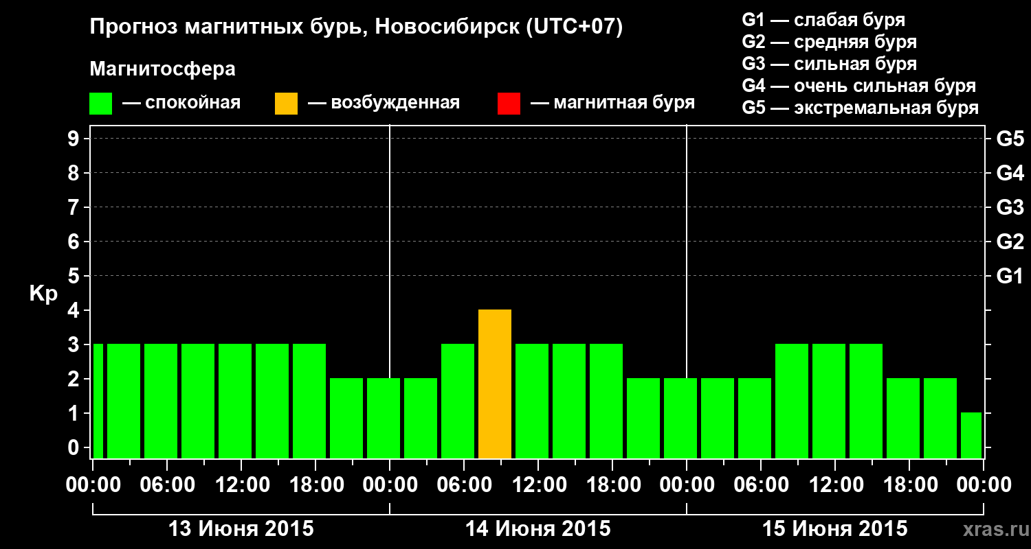 Прогноз магнитных бурь в Новосибирске — 13 июня 2015 года