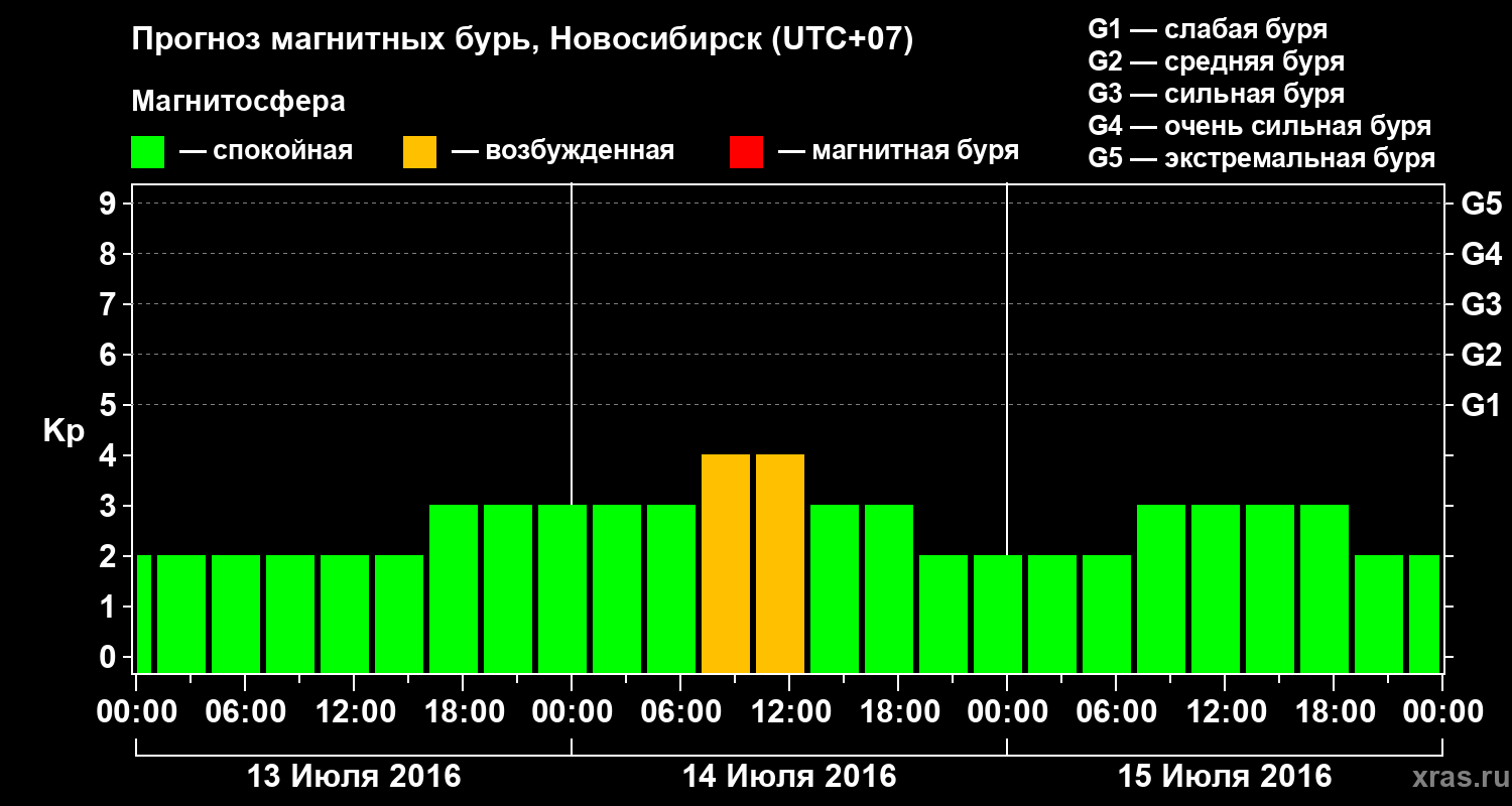 Прогноз магнитных бурь в Новосибирске — 13 июля 2016 года