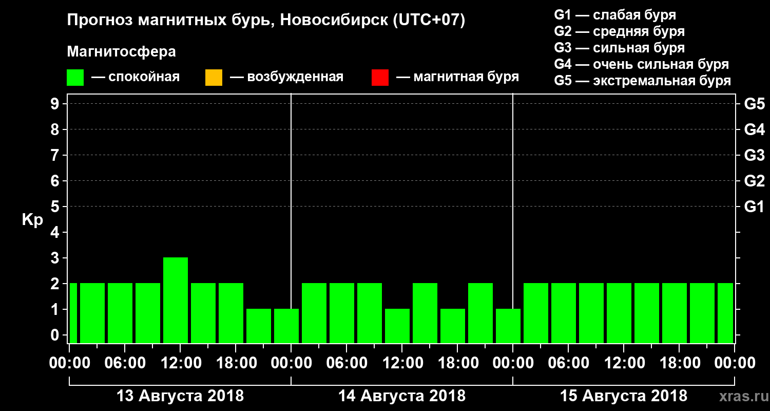 Прогноз магнитных бурь в Новосибирске на 13 августа 2018 года