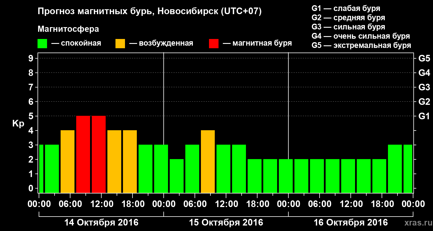 Прогноз магнитных бурь в Новосибирске — 14 октября 2016 года