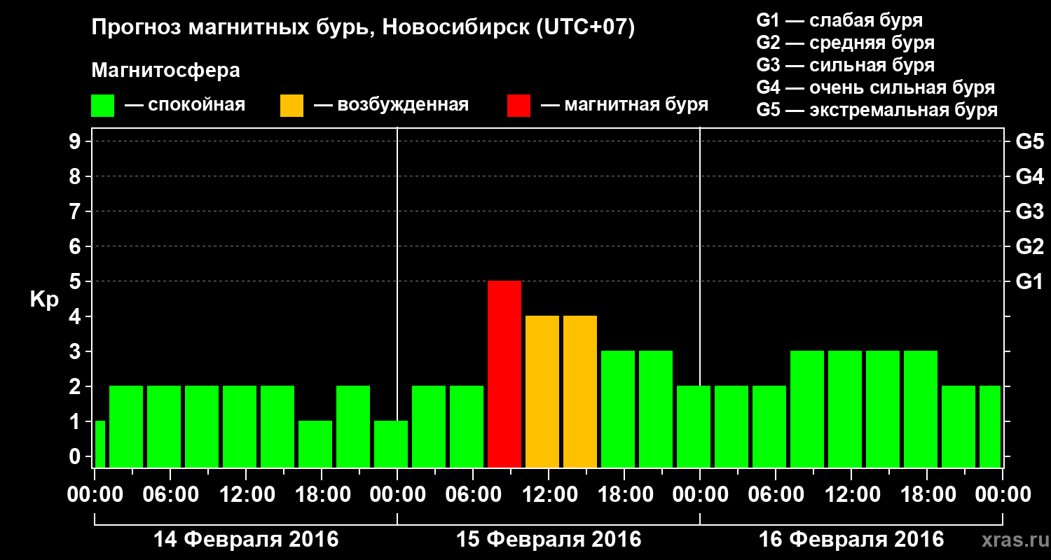 Прогноз магнитных бурь в Новосибирске — 14 февраля 2016 года