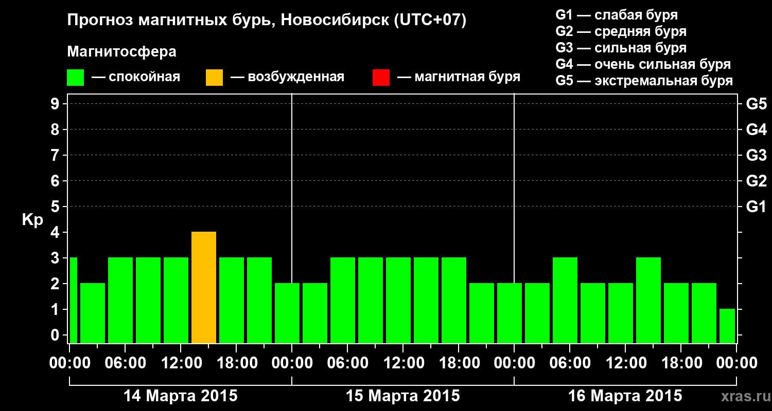 Прогноз магнитных бурь в Новосибирске — 14 марта 2015 года